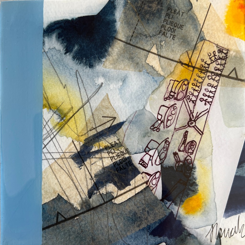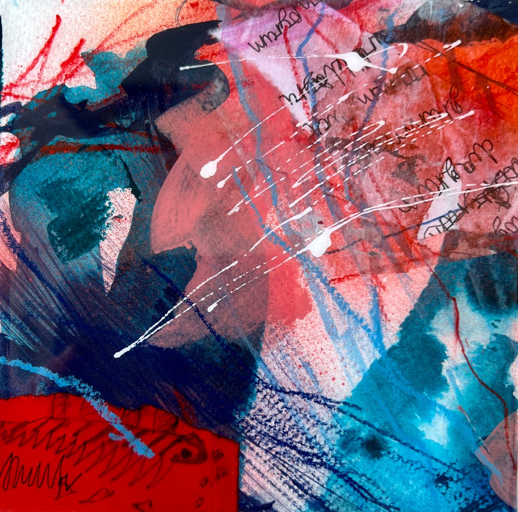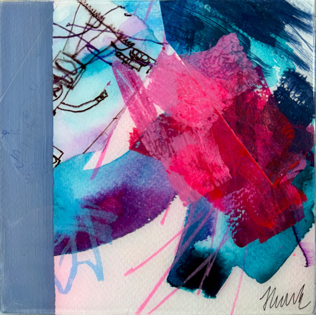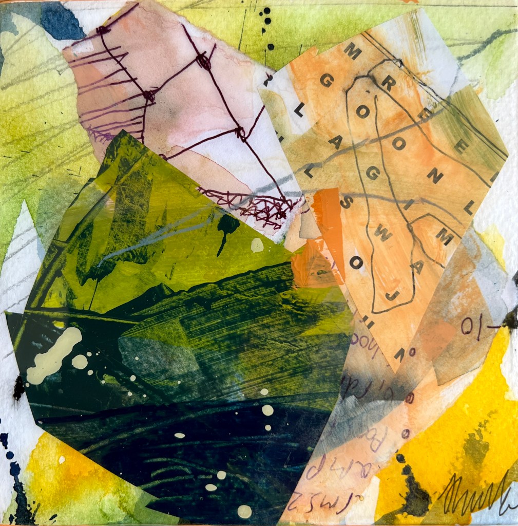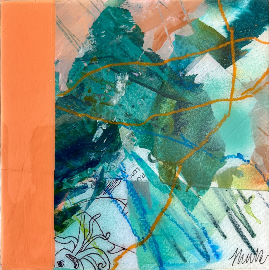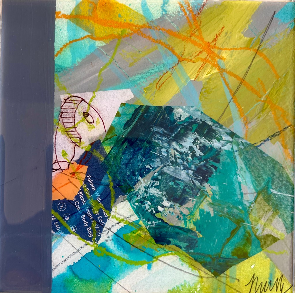 Mixed media artwork adhered to cradled wooden panel and finished with a resin topcoat.